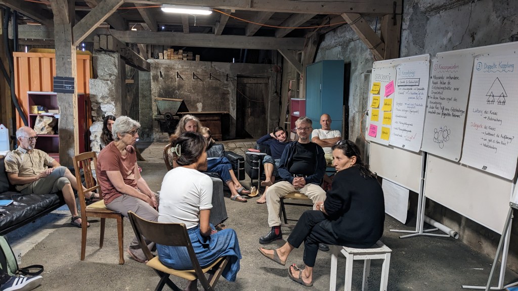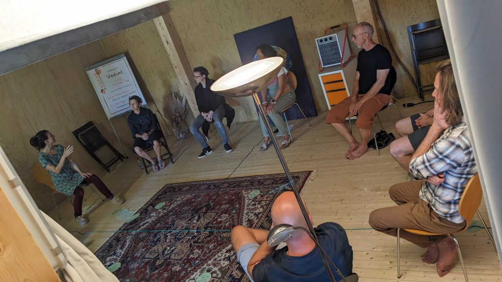 Wie „kollektiv und partizipativ entscheiden“ einen fruchtbaren Boden für Veränderung bereitet, war Thema des Samstag Morgens, bevor wir uns am Samstag Nachmittag zur individuellen und kollektiven Reflexion und Ernte an der Aare auf die Holzschnipsel legten. Den Abschluss bildete das 5Rhythmen-Tanzfest in Solothurn – eine grossartige Erfahrung, wie über 100 Menschen gemeinsam mit Tanz und Körper feiern.